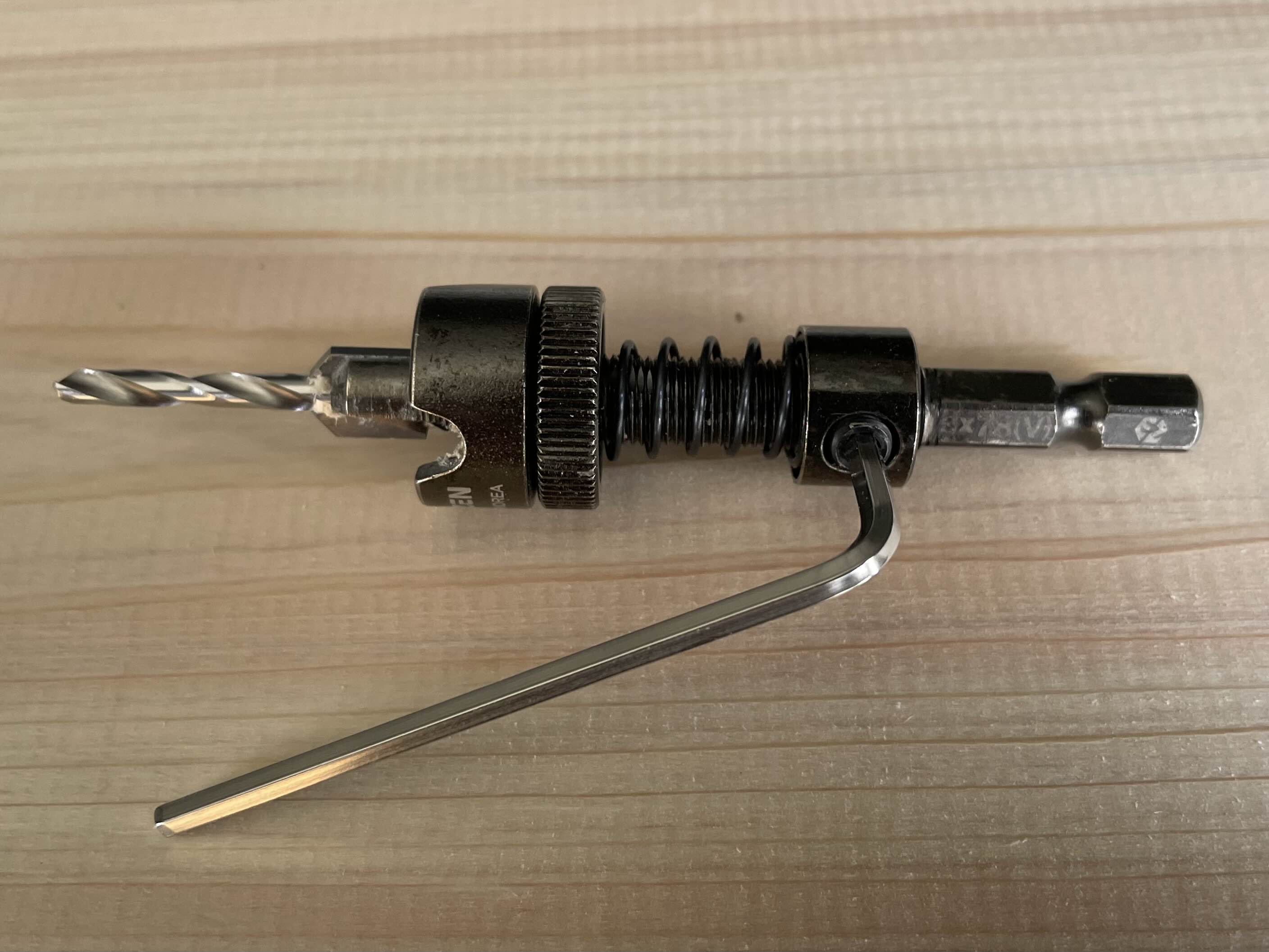 나무의 두께나 목다보의 깊이에 따라 길이 조절이 필요한 경우, 동봉된 육각 렌치를 이용하여 조절합니다.