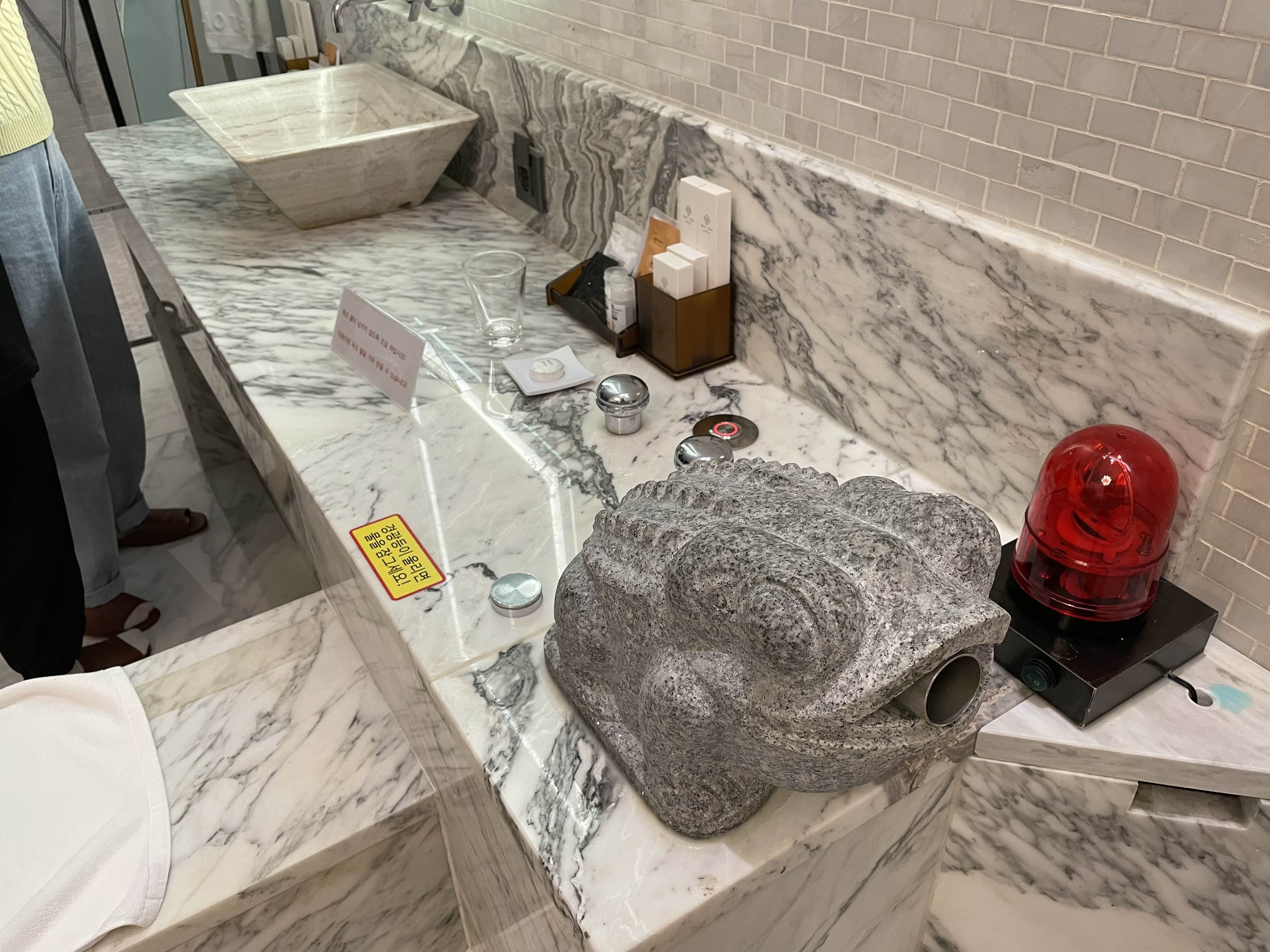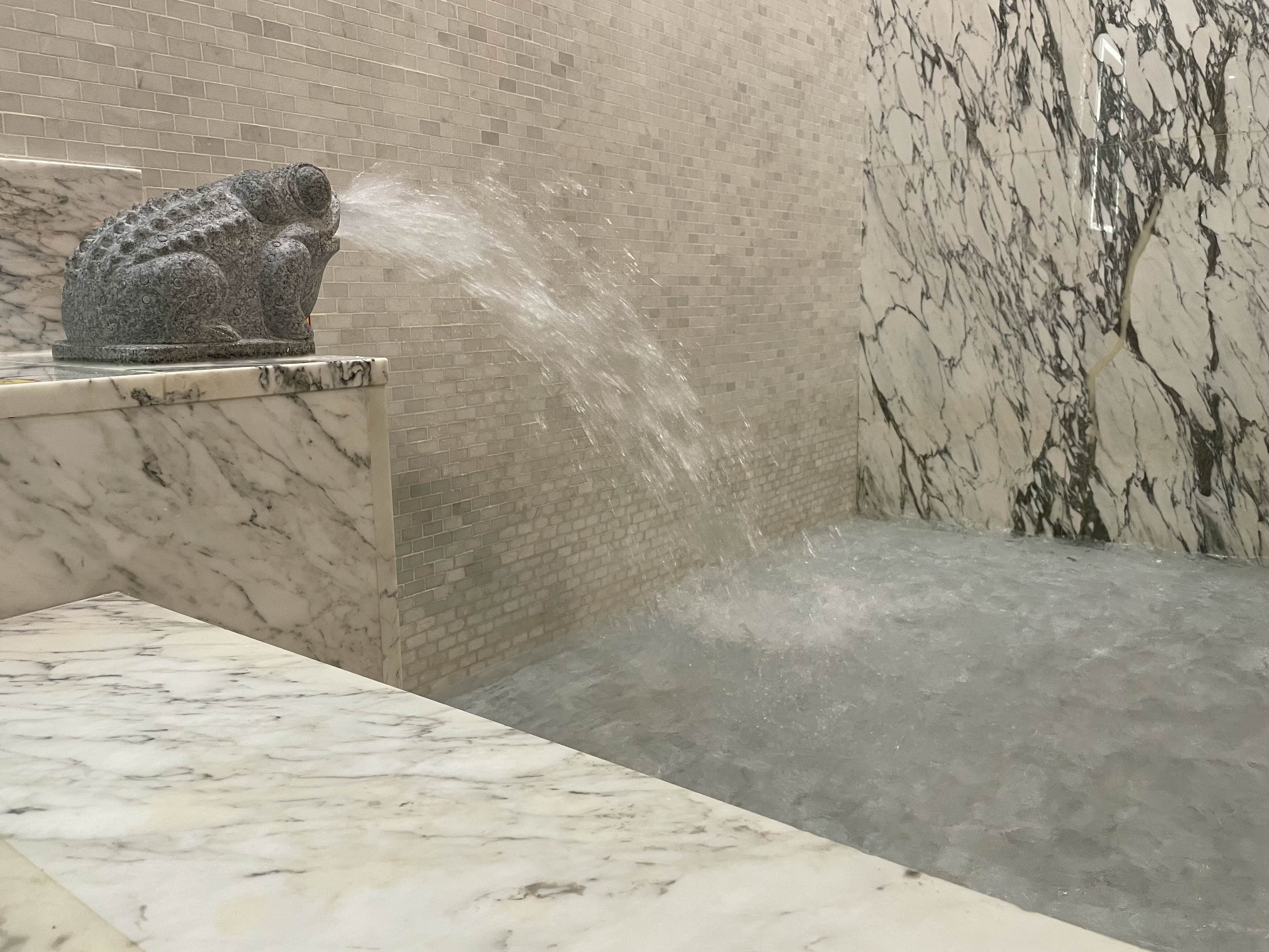 먹거리에 만족하고 휴식의 심화과정으로 돌입한다. 두꺼비가 실력 발휘를 한다. 저 넓은 욕조를 가득 채우는데 10분이 채 안 걸린다.