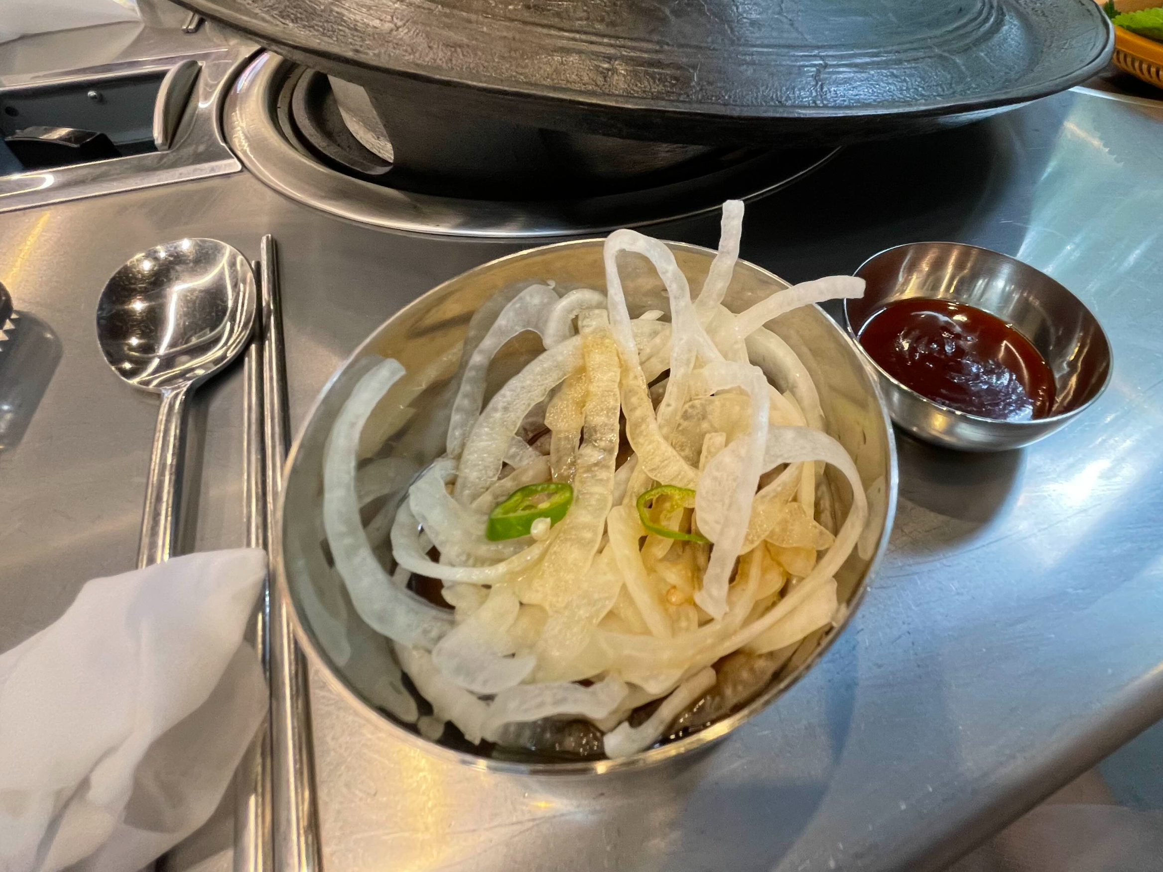 간장소스에 담긴 양파도 맛깔스럽다. 적당히 짠맛, 적당히 단맛, 적당히...