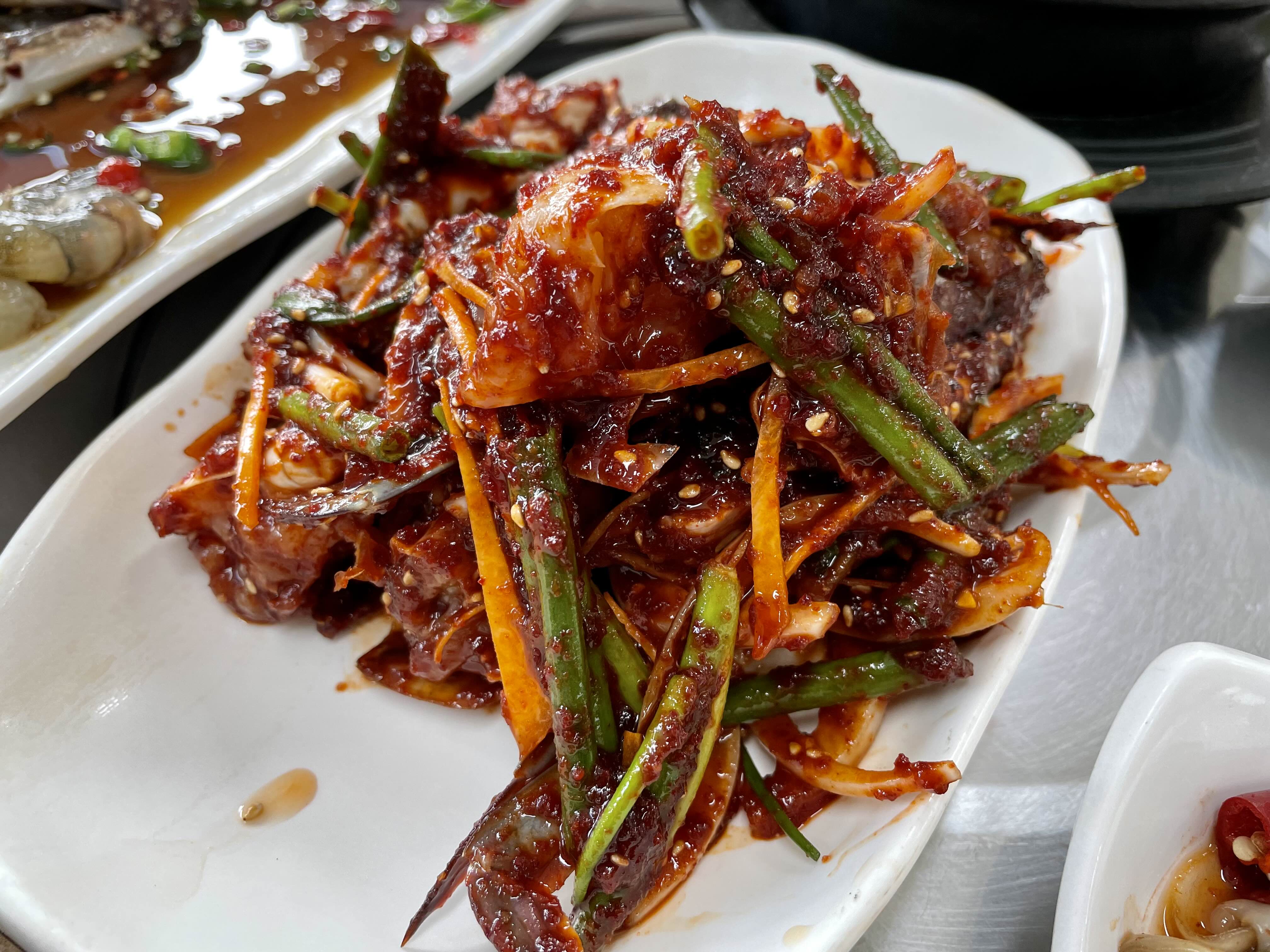 양념게장! 이 녀석을 더 즐겨하는 분들이 꽤 있나 보다. 하지만 우리 식구에게는 부메뉴! 맛이 떨어진다는 말이 아니라, 간장게장을 더 좋아한다는 말이다.