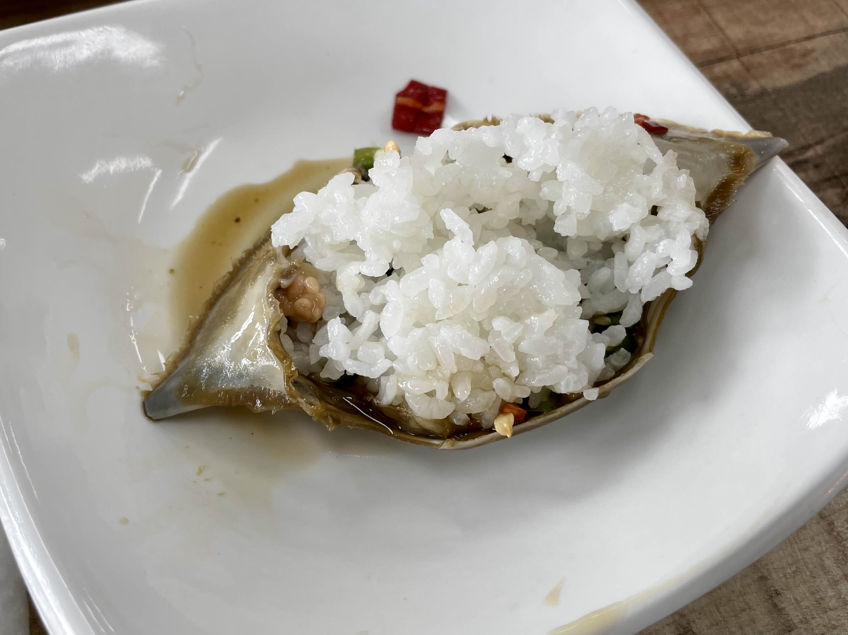 게딱지에 밥을 놓고 아기자기한 숟가락질로 정성 들여 비벼본다. 1인 1게딱지!