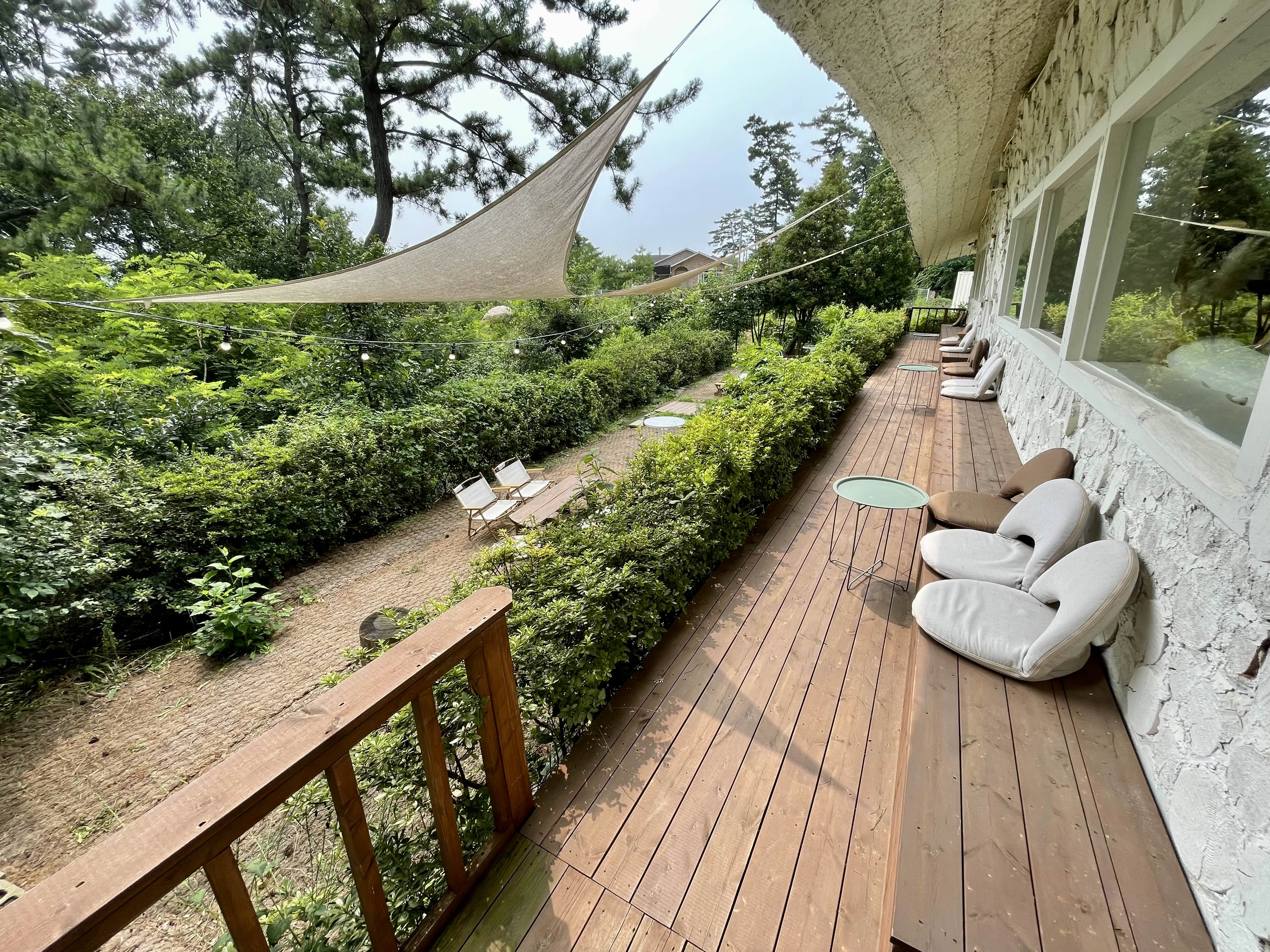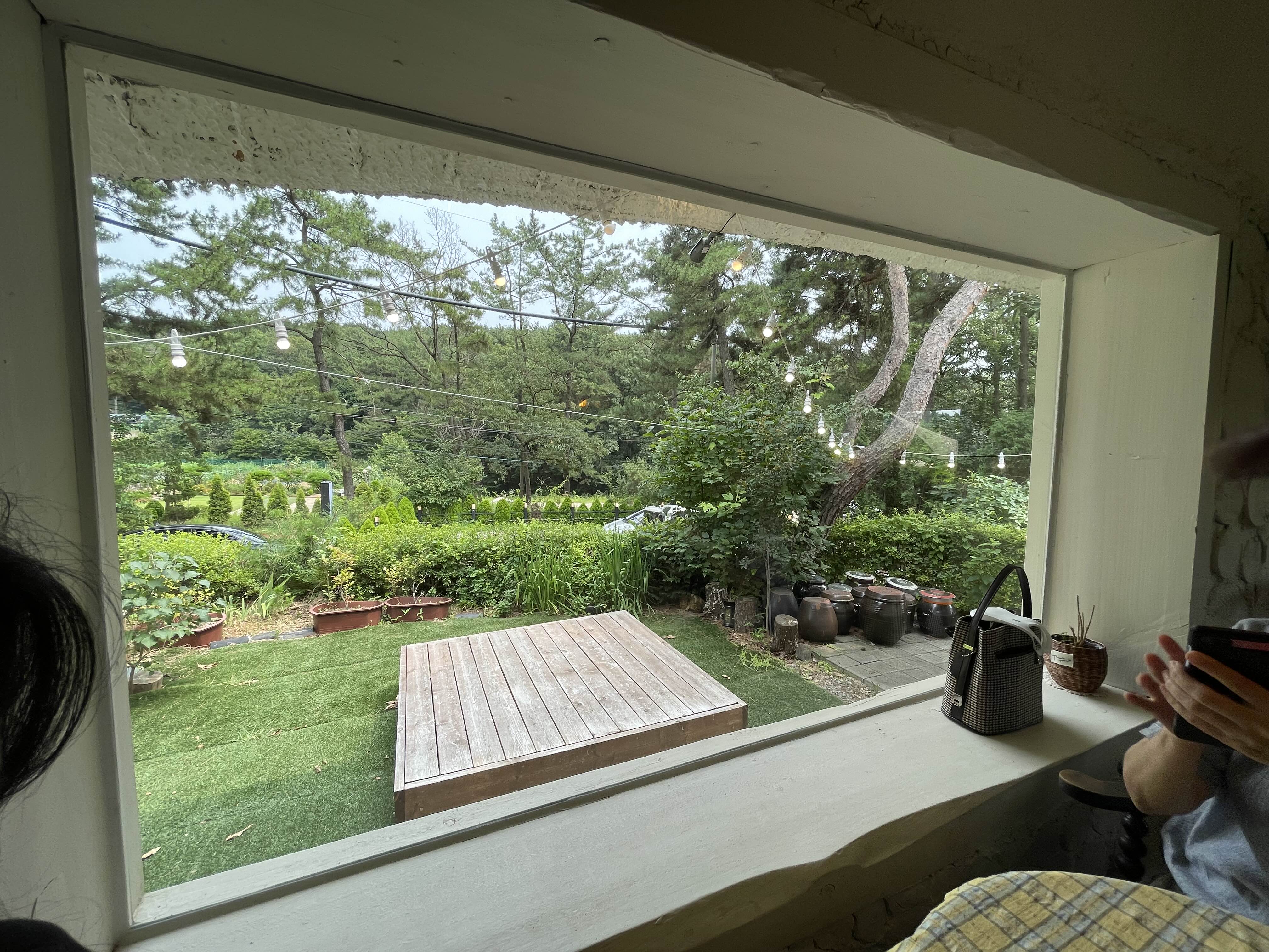 시원하게 커다란 창을 통해 바라보는 초록의 정원은 밖의 기온이 30도가 훌쩍 넘는다는 점을 잊게 해 준다.