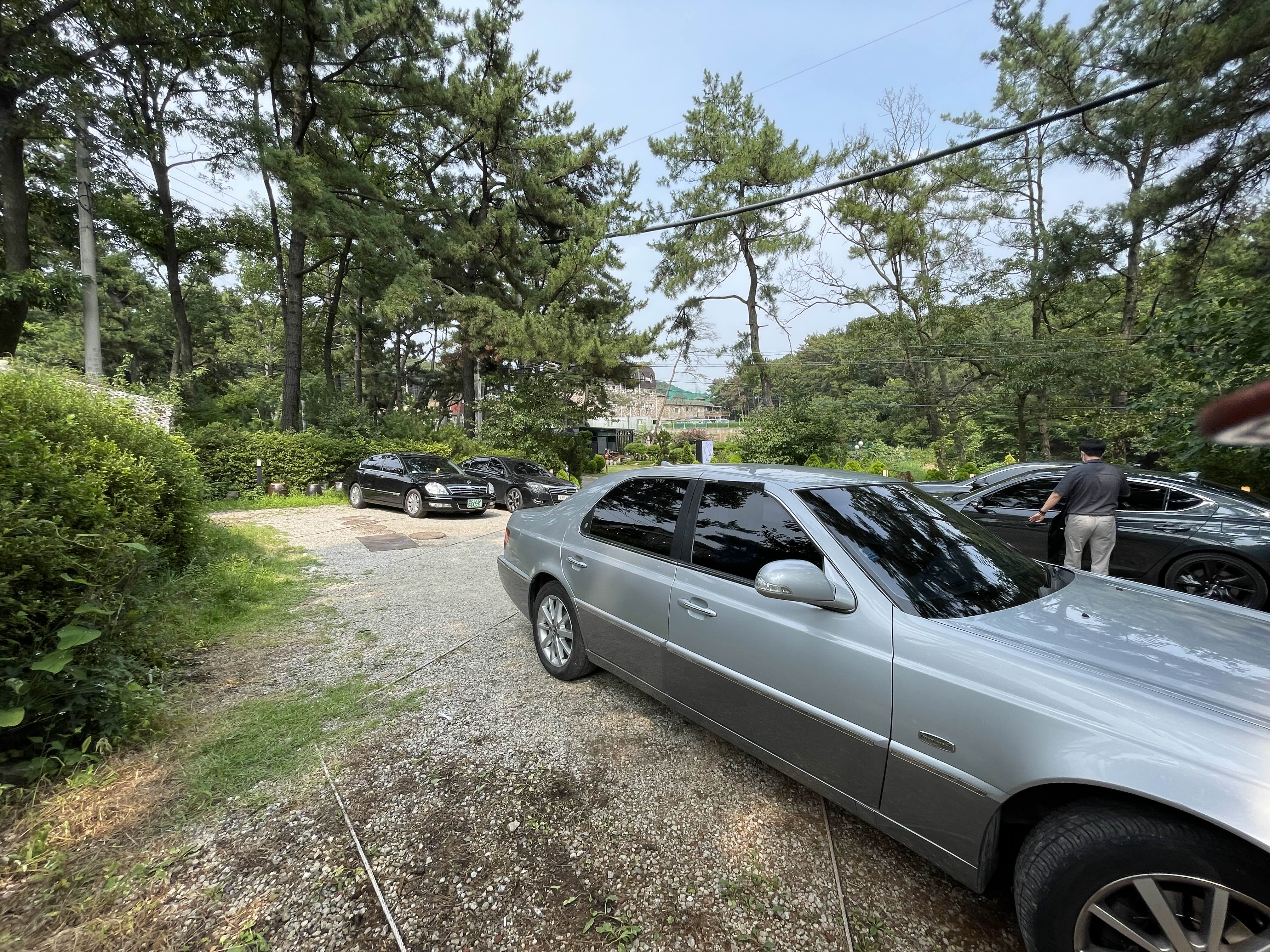 음료와 커피가 동나고 길지 않은 시간에 우리 가족은 늘포레를 빠져나왔다. 주차장은 늘포레의 규모만큼만 확보되어 있었다. 조금만 더 넓었더라면 출입이 한결 수월할 것이다. 최대 광각 사진이라 오른쪽 하단의 체어맨 롱바디가 주차장의 반을 차지한 것처럼 보인다.ㅎㅎ