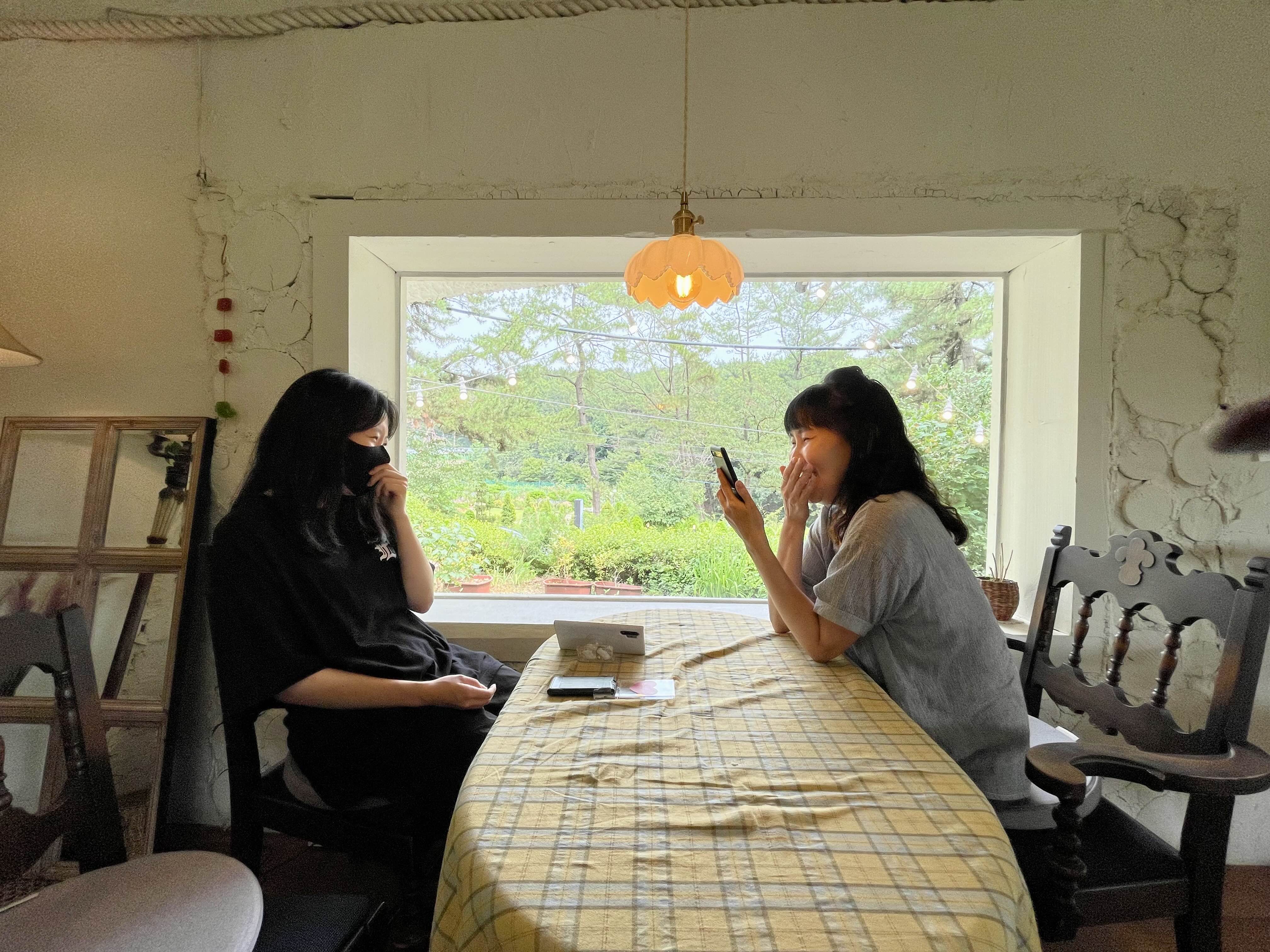 아래 사진의 테이블이 가장 이뻤다. 동화 속 주인공의 지정석쯤은 되어 보였다. 비교적 카페 중앙에 자리 잡은 점도 내 추측을 뒷받침한다. 그래서 이 자리는 다른 이에게 양보한다. 우리 식구 그 누구도 이 자리의 이쁨을 부정하지 않지만 그 누구도 선뜻 자리하지는 않았다.