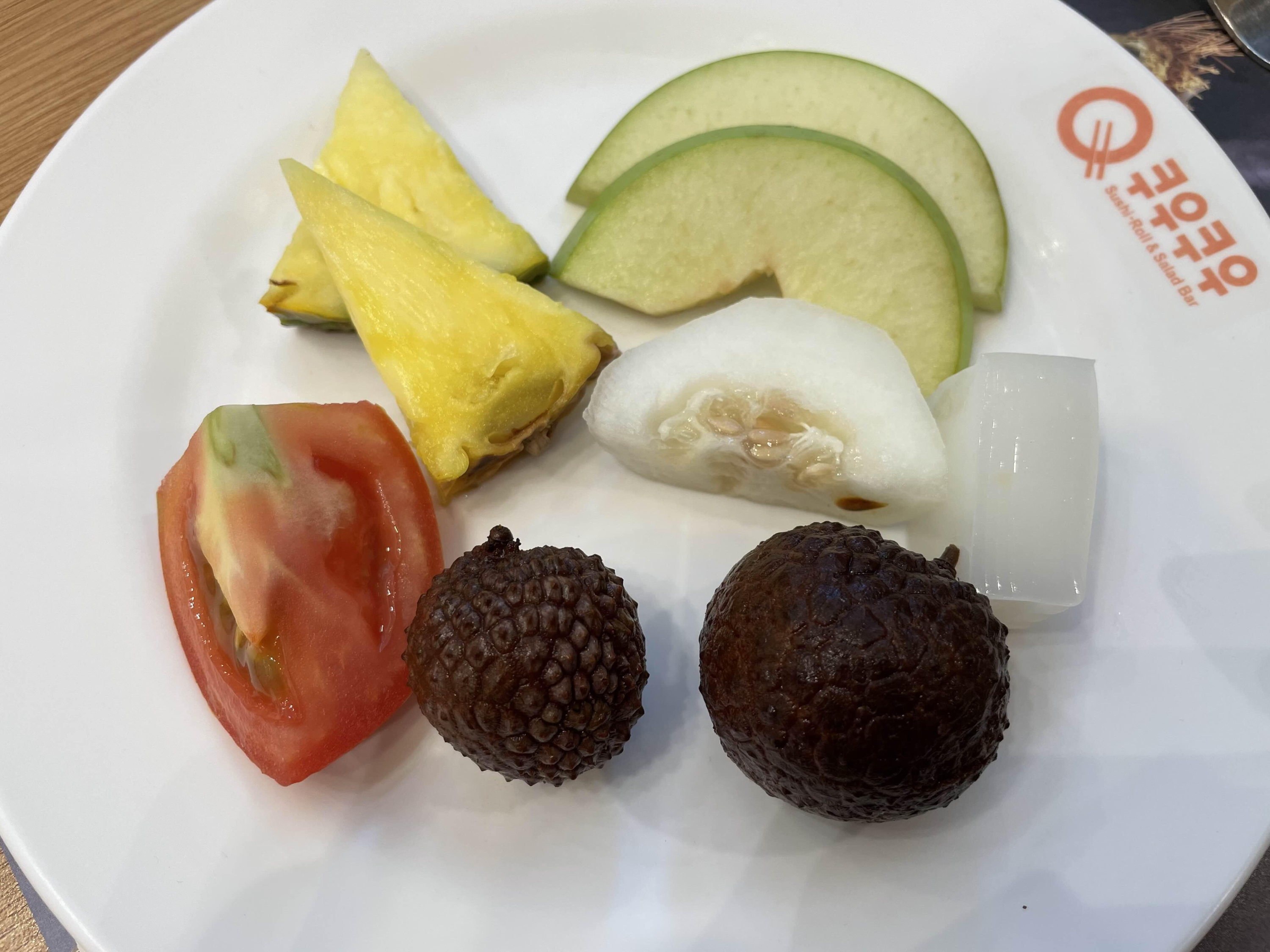 흡연을 즐기고 돌아와 보니 딸아이가 마지막 후식이라며 이쁘게 한 접시 담아왔다. 리치라는 열대과일의 이름이 생각나질 않아... 쿨럭!