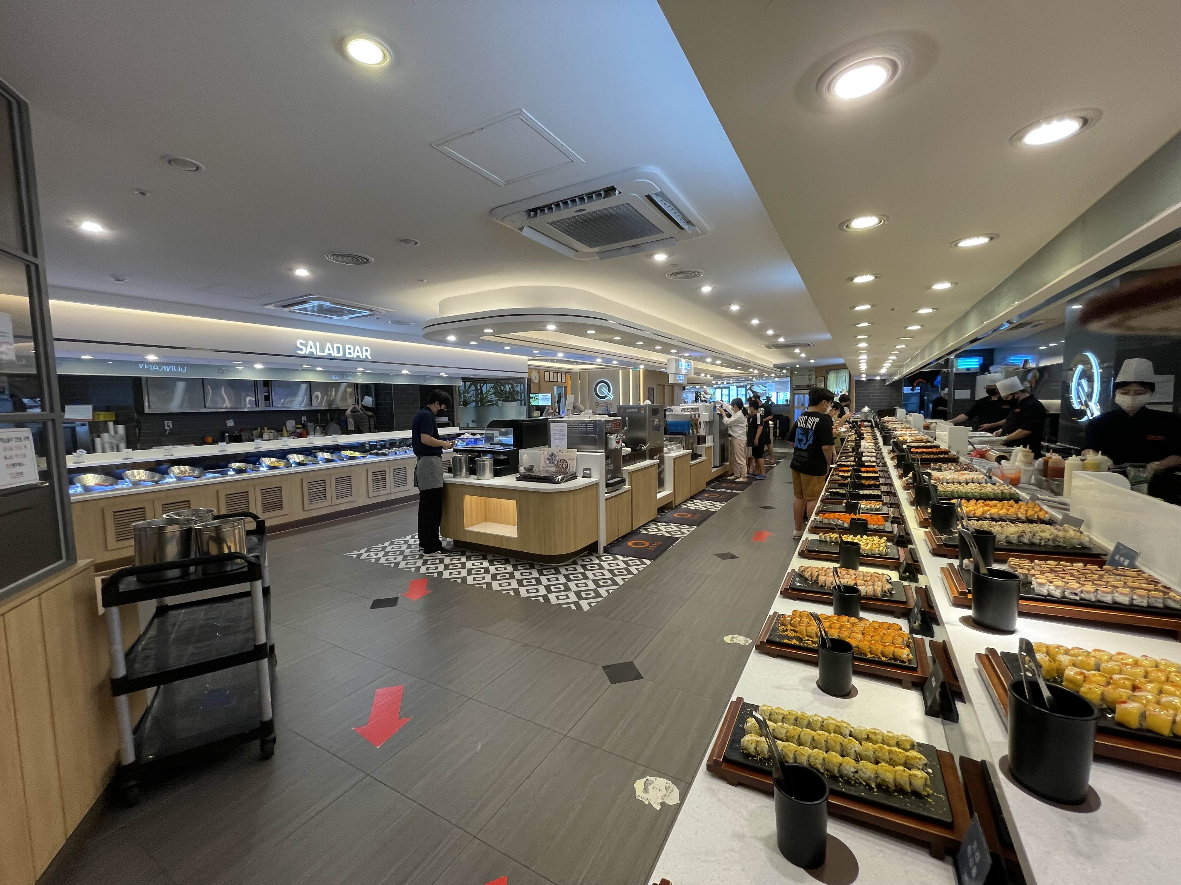 쿠우쿠우를 그간 한 세 군데 다녀왔다. 첫 번째로는 광명 하안점, 두 번째는 일산 화정점 그리고 이번 시흥 은계점이다. 첫번째의 하안점은 없어졌지만 그 규모는 두번째 갔던 일산 화정점과 비슷했다. 그런데 이번 은계점은 규모가 매우 컸다. 홀이 상당히 컸다. 아래 사진에서 확인이 가능하다. 초상권 문제가 걱정이 되어 최대한 사람이 없는 시간을 기다려 찍은 사진이다. 홀의 중간에 서서 파노라마 사진을 찍고 싶을 정도로 규모가 컸다. 그놈의 초상권 문제로 결국 담아내질 못했다. ㅠㅠ
