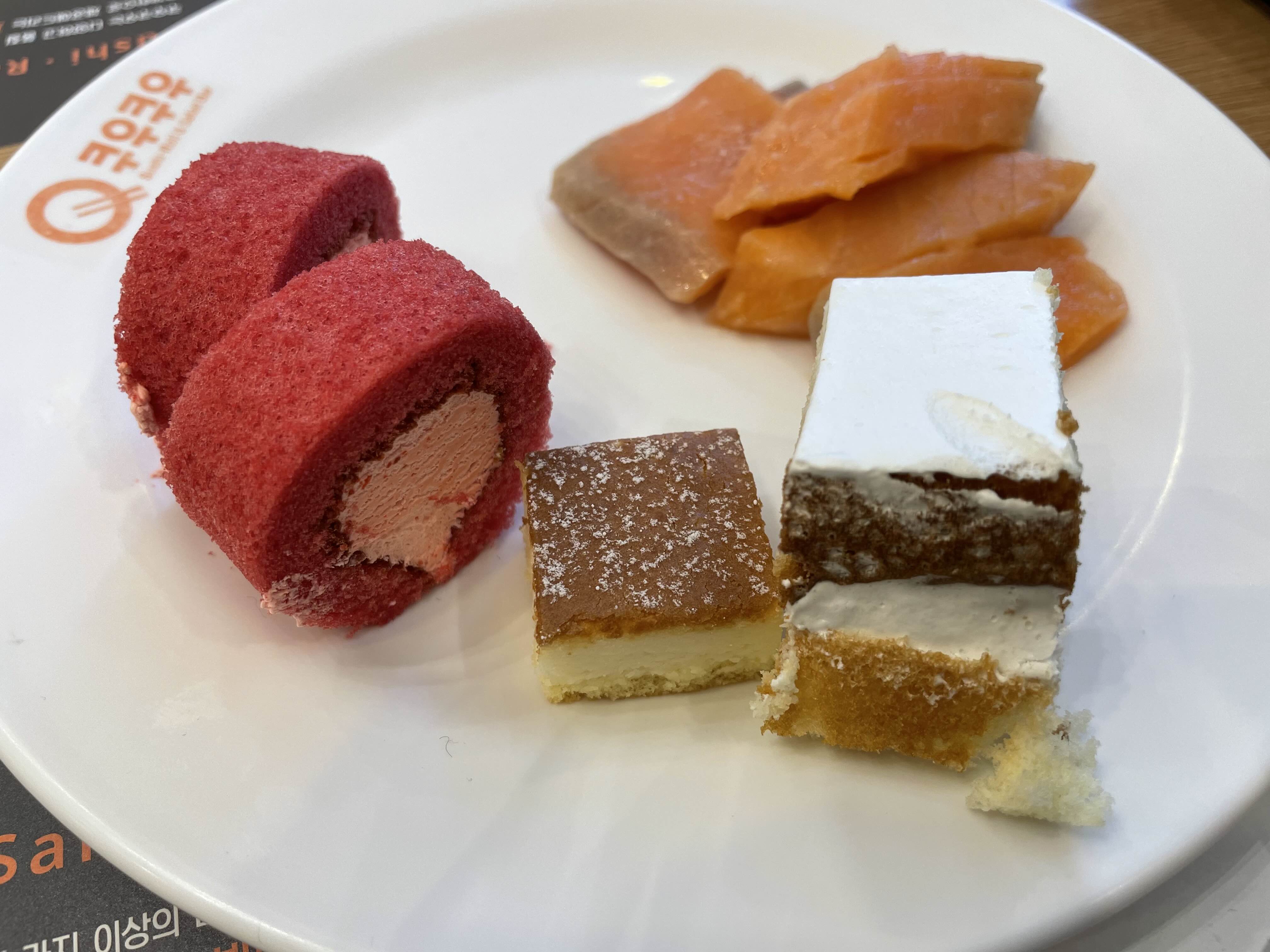 어느 정도 채워진 배에 만족감을 느끼며 디저트를 골라 먹는다. 여기부터는 딸아이 둘이서 서빙을 했으며, 와이프와 나는 자리에서 편하게 후식을 즐겼다. 사진 찍기 좋게 이쁘게 담아 오라는 잔소리를 해가면서. ㅎㅎ