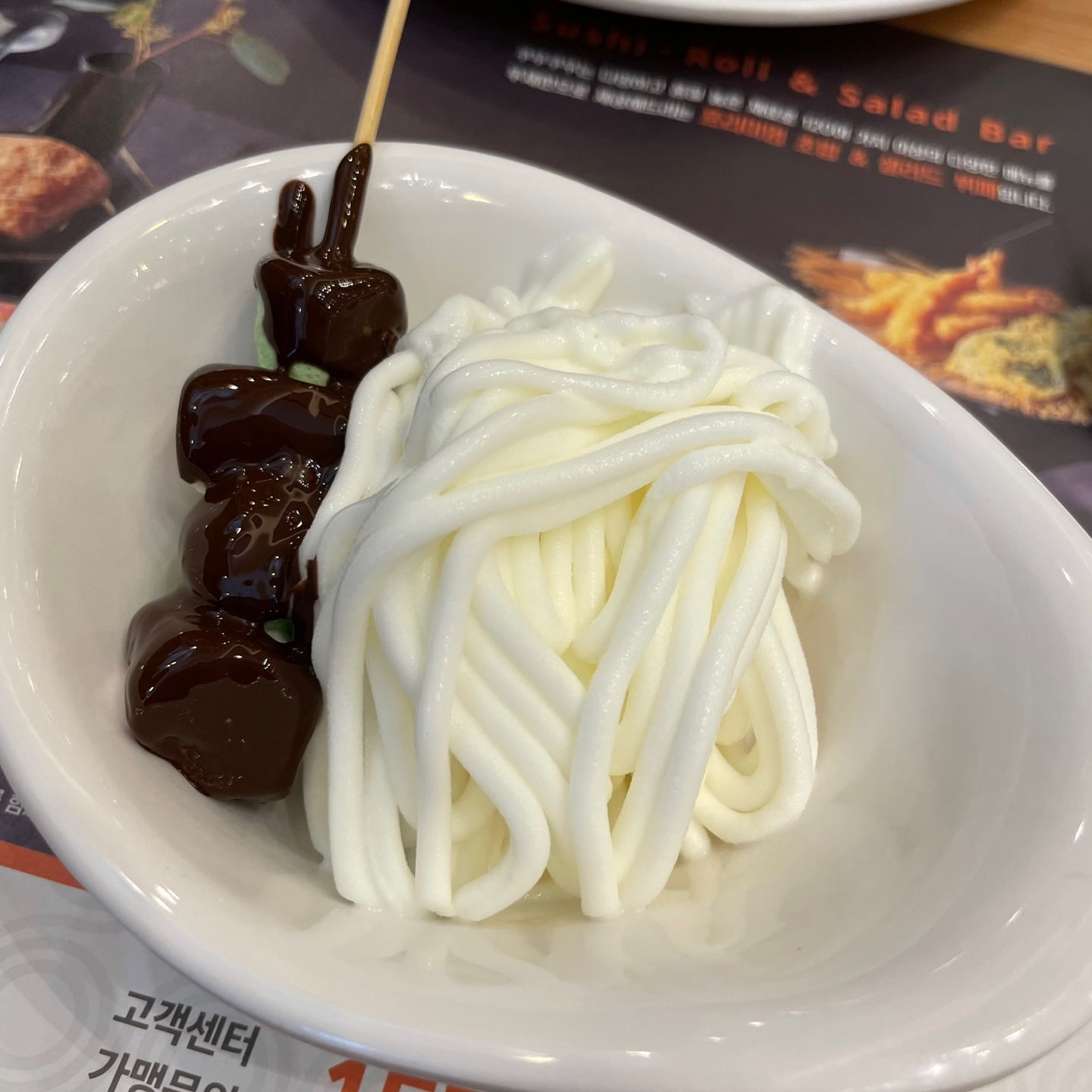 바닐라맛 아이스크림과 쵸코가 발린 마시멜로.
